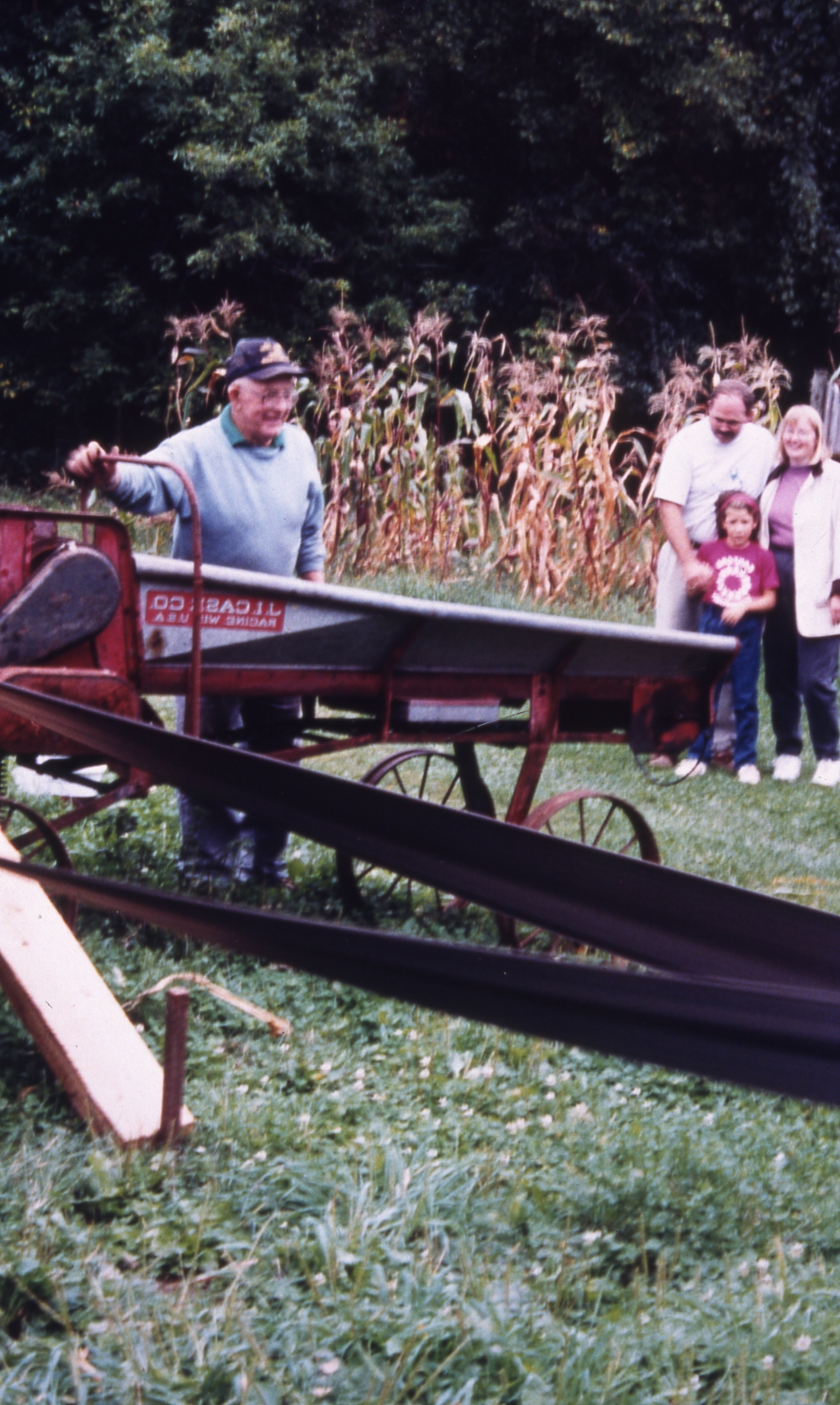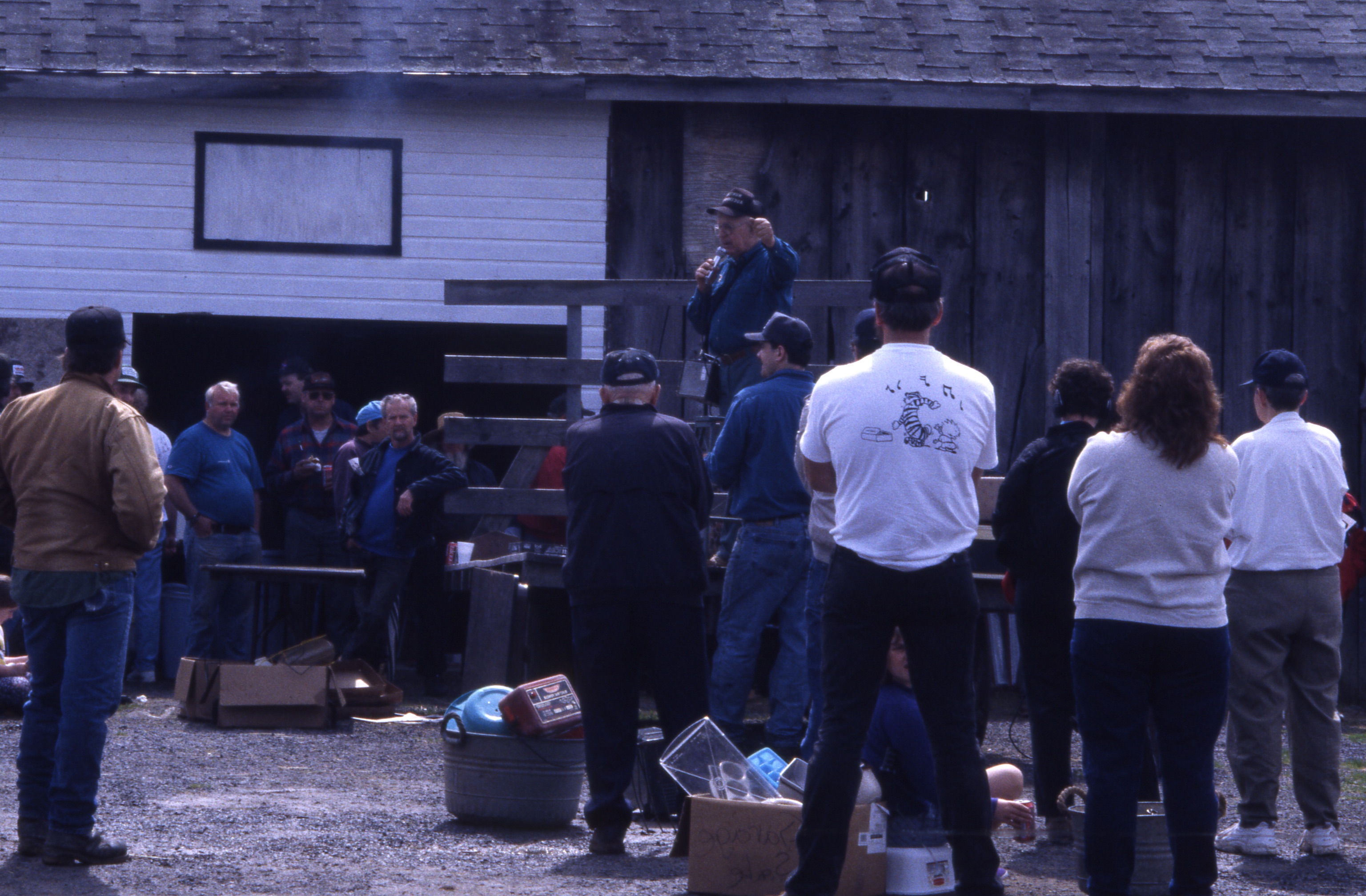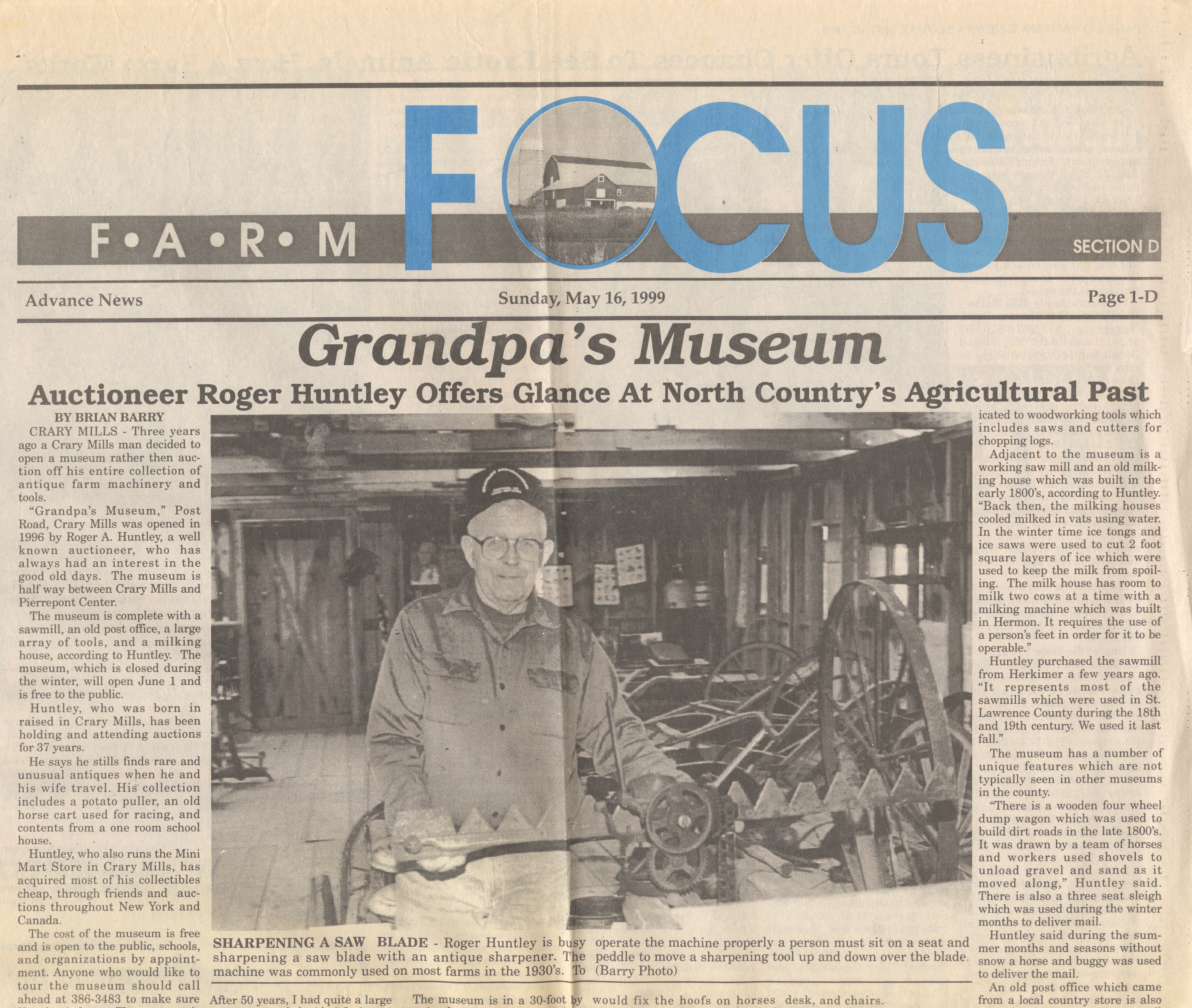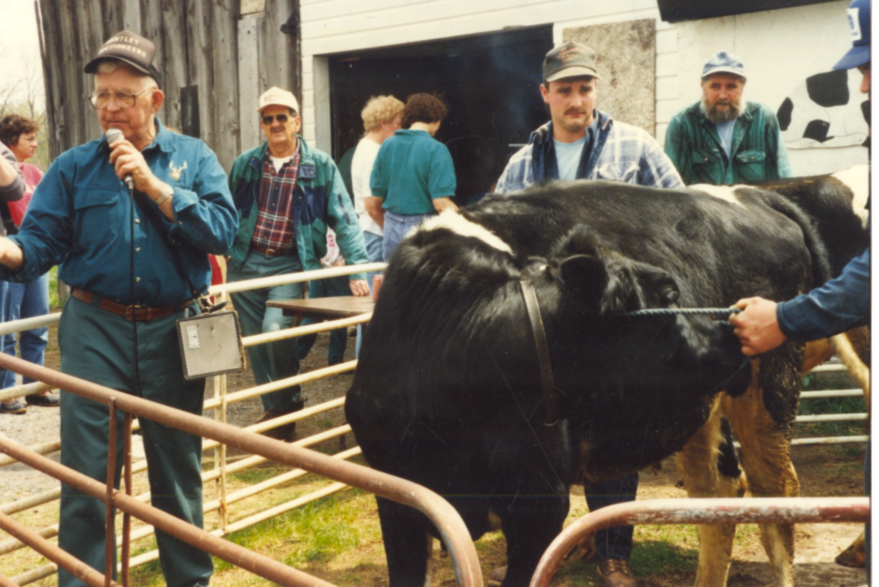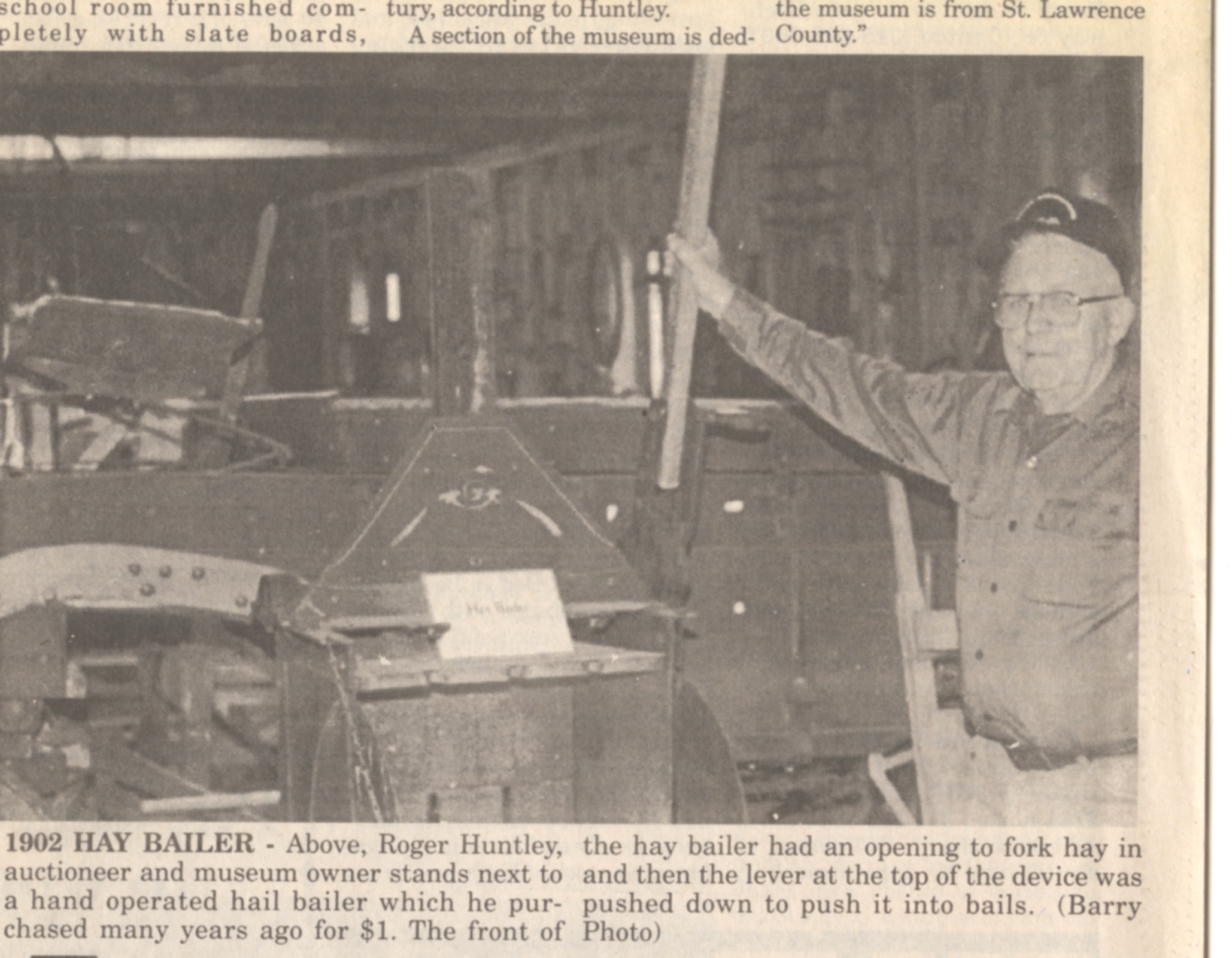 Since the day in the late 1950s when he was first asked to stand in for a popular cattle dealer to sell donated items for their local church benefit, Roger Huntley of Crary Mills was an auctioneer. The sixth generation of his family to operate their 300-acre dairy farm in the town of Pierrepont, Roger knew country things and country people. During the 50 years he was auctioneering, he witnessed the near-disappearance of small family farms throughout the region. He conducted the premiere old-time sales in the northern Adirondack foothills and St. Lawrence Valley. Through the years, his wife Ann and six children helped him considerably with planning and carrying out their busy schedule of sales. Their daughter Helen, an elementary school teacher, learned the art of auctioneering from Roger and helped him with nearly every auction.