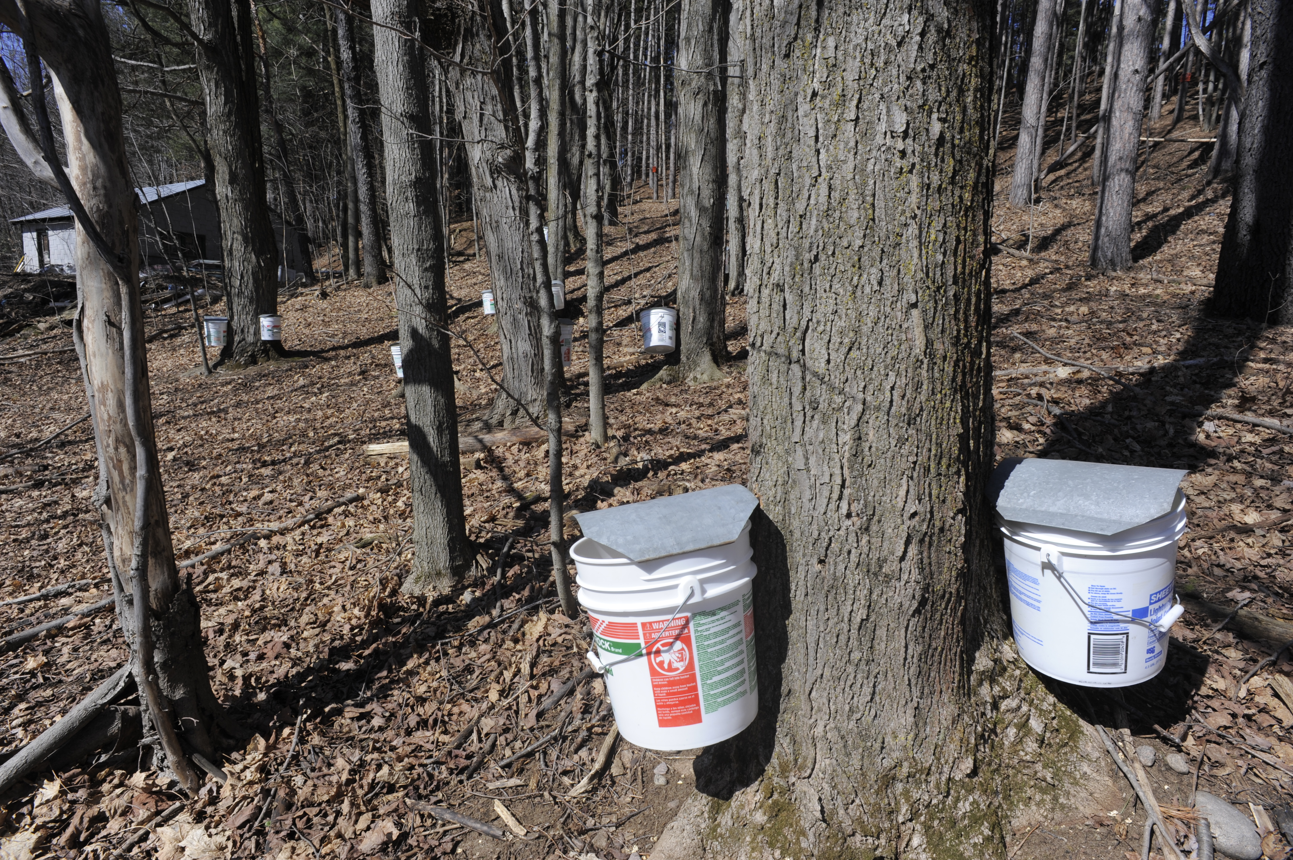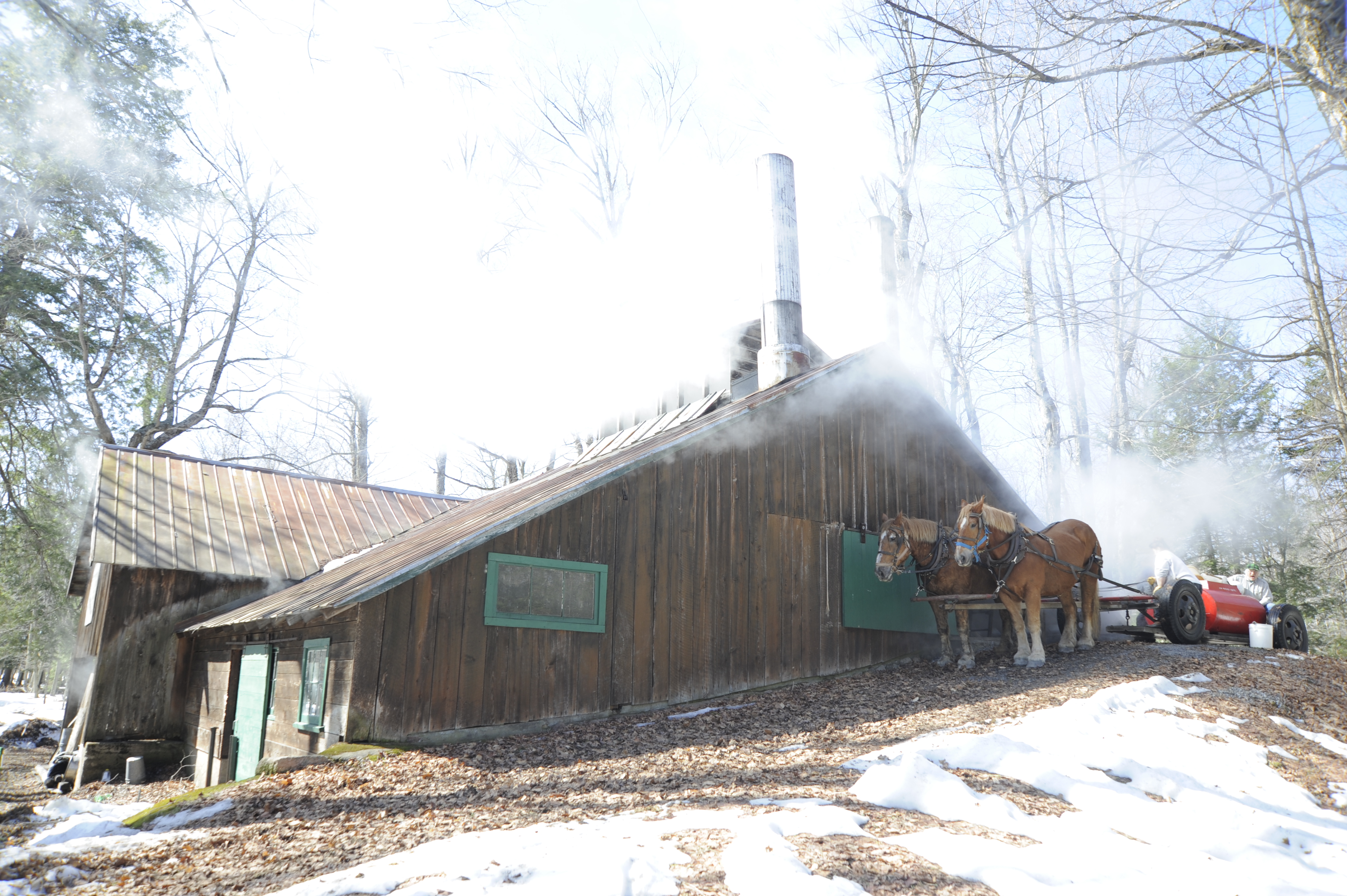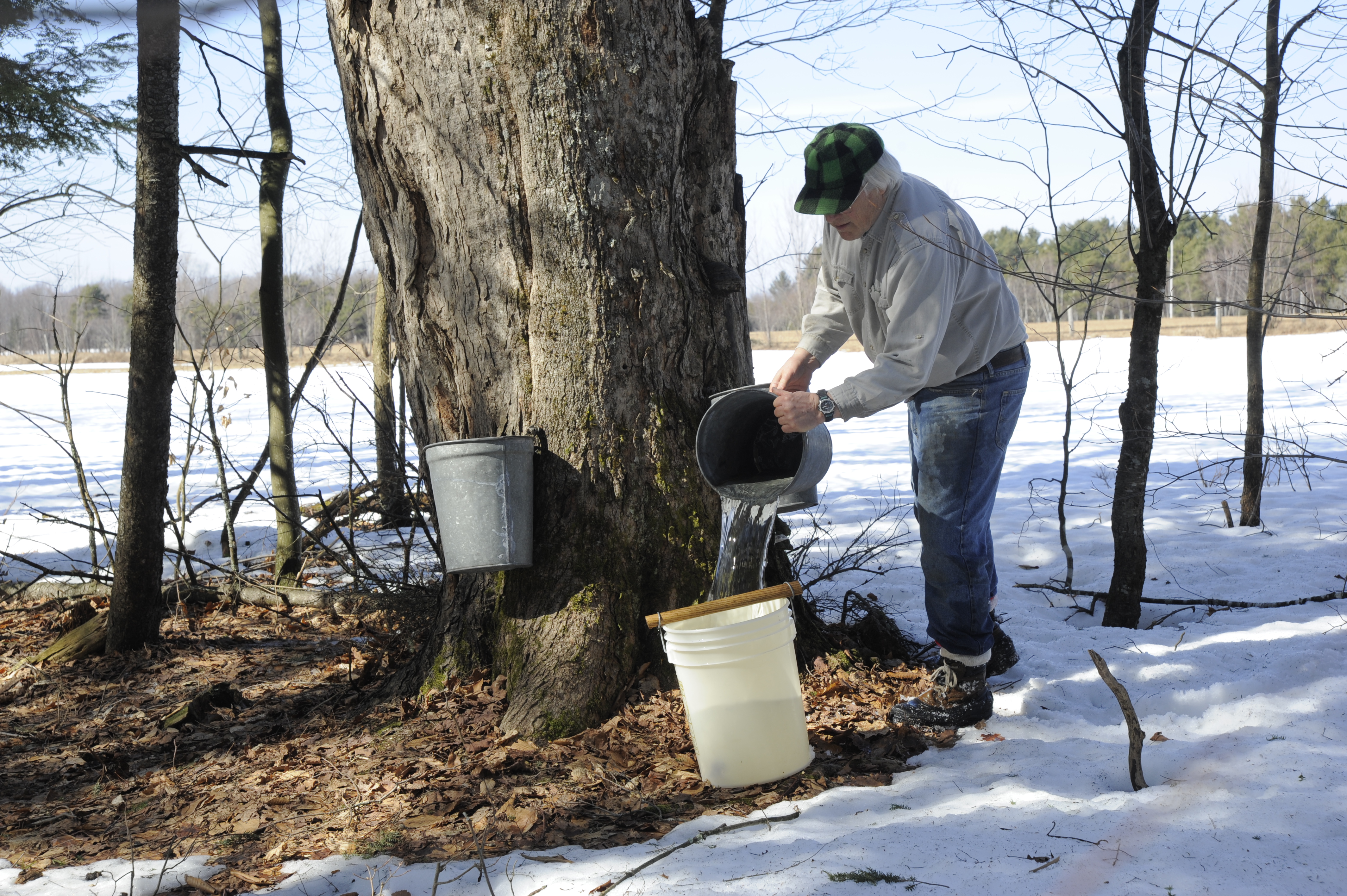 Maple sugaring is a passion for Haskell and Jane Yancey, whose ancestors first tapped trees on the Yancey farmstead in 1844. They and their children and son-in-law—Beth along with her husband Dan Faulknham, Tim, and Cathy—represent the fourth and fifth generations to make maple syrup on the Yancey farm, gathering sap each year from their over 5,000 maple trees. Beth and Dan’s daughters Jocelyn and Margot are the sixth generation working in the sugarbush. Over the years, the Yanceys have resisted pressures to convert entirely to the use of plastic tubing and vacuum pumps for gathering sap, and remain one of the few sugarbush operators who continue to gather with buckets and horse-drawn tanks. The number of trees they tap, and the methods for tapping them, vary by year—at times, they have tapped 6500 trees over 170-180 acres. At the time of a visit in 2021, they had 2700 taps on a vacuum system, 600 on tubing working with natural flow, and roughly another 1200 buckets out on trees. Some of the equipment they use dates to the first half of the 20th century, and their 1920s-era evaporator is fueled by wood cut on their woodlot. Each maple season the sugarbush becomes a social mecca for family, friends, hired hands, and visitors new and old who come to watch the sugaring—and take home syrup and maple candy—year after year.