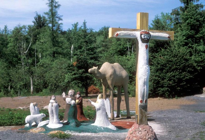 Inspired by her dedication to her family, to nature and her devout Catholic beliefs, the sculpture garden includes pieces as diverse as St. Francis of Assisi and a bird tree, a life size nativity scene, Adirondack whitetail deer and black bears, and sculptures of all the members of her family.